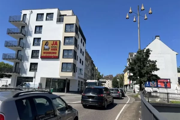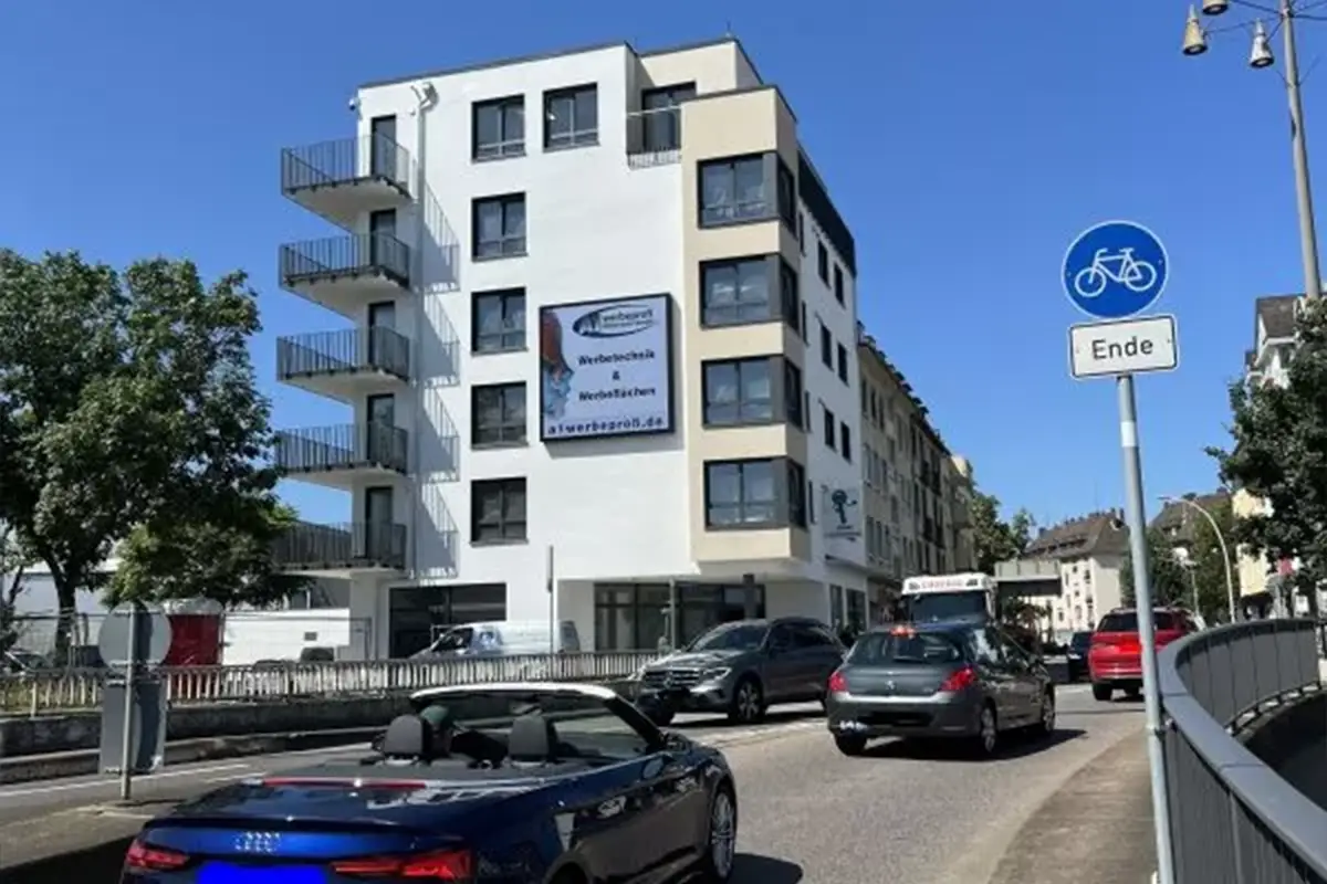 Dieser Top-Querstandort liegt an einer der meist befahrenen, dreispurigen Straßen in Koblenz in direkter Anbindung zur B9 am Kreisel. Gute freie Ansicht schon ab circa 200 Meter. Sehr hohe PKW-Frequenz. In unmittelbarer Nähe befindet sich das Einkaufs-Centrum Löhr-Center.